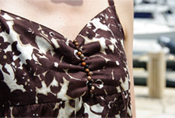 大人っぽいプリント生地のマキシ丈ワンピース。