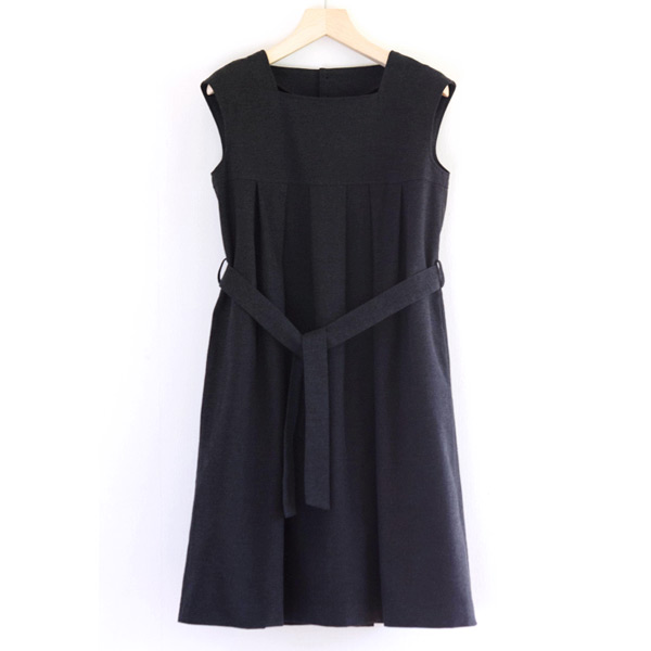 コットンなのにぬくもりを感じるちょっとトラッド感のある素材が上品なプリーツ使いのジャンバースカートです。