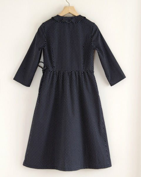 清潔感のあるコットンの水玉プリントを使ったカシュクールワンピースです。昔懐かしいフレンチカジュアルを思う起こさせる不思議な雰囲気を持つフリル使いがポイントの水玉ワンピースです。もちろん無地で作っても清楚な印象のワンピースが出来あがりそうでいいですね。